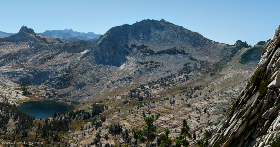 view from the ridge of Cathedral Peak, south to Budd Lake, Echo Ridge, and Echo Peaks #8 & #9.