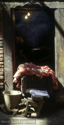 Cows are not holy in Nepal. One second thoughts, neither are pigs, which is what this is more likely to be. ( or, rather, to have once been ).
