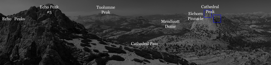 view from Echo Peak #8 looking northwest towards Tuolumne Peak and
