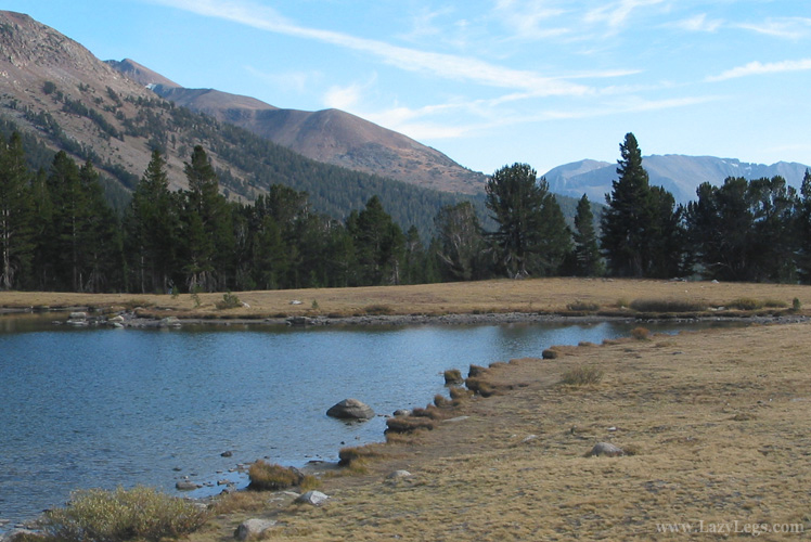 view from trailhead near Tioga Pass, south across the slopes of Mt Dana to Mt Gibbs.